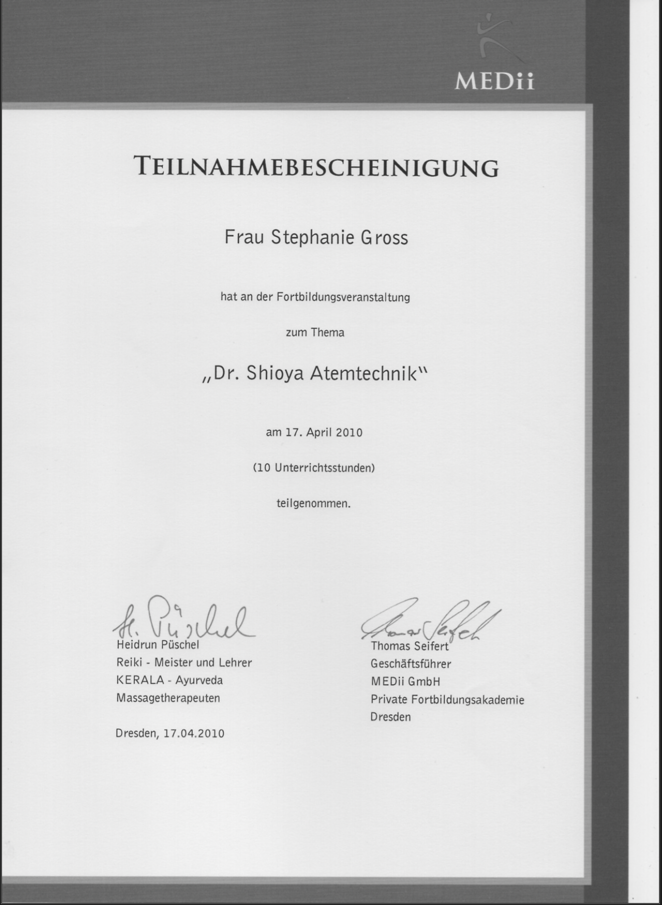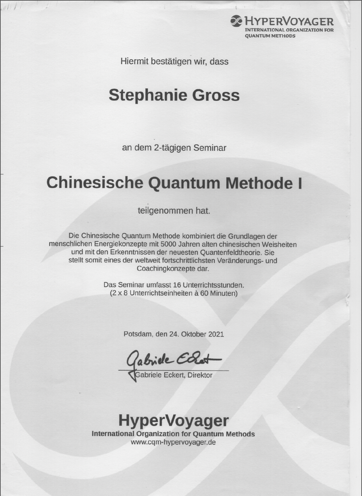 Geprägt von der Schulmedizin, haben mich meine eigenen Erfahrungen zur Naturheilkunde geführt. In meinem Fernstudium zur Heilpraktikerin habe ich mein Wissen vertieft und durch zahlreiche Weiterbildungen mein Spektrum erweitert.